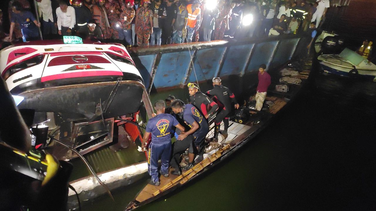 মধ্যরাতে হামজা টেনে তুললো ডুবে যাওয়া বাস : মিললো ১৩ মরদেহ